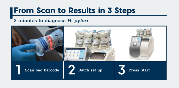 Die moderne BreathID® Smart Urea-Atemtest-Plattform zum H.-pylori Nachweis einer aktiven Infektion oder zur Bestätigung der Eradikation. Kombiniert intuitive Bedienung mit marktführender diagnostischer Genauigkeit und effizienter Automatisierung – ideal für Testvolumen im mittleren Bereich.